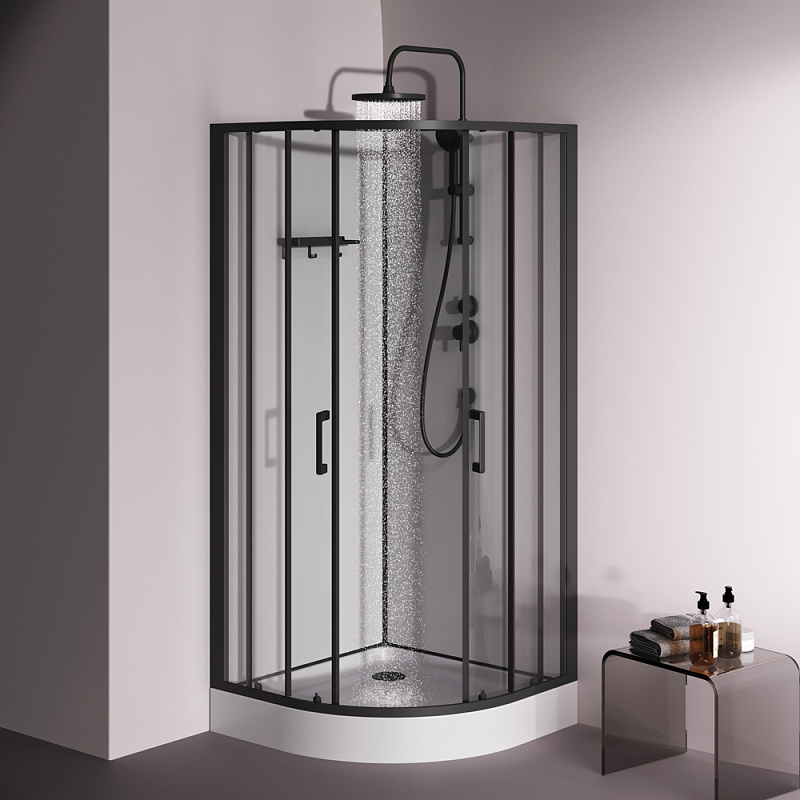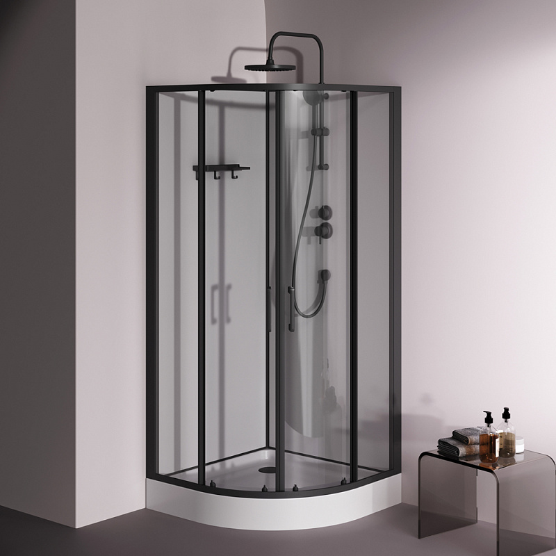 Душевая кабина 90x90 AM.PM Above W9XC-401-9090BT профиль черный матовый, низкий поддон