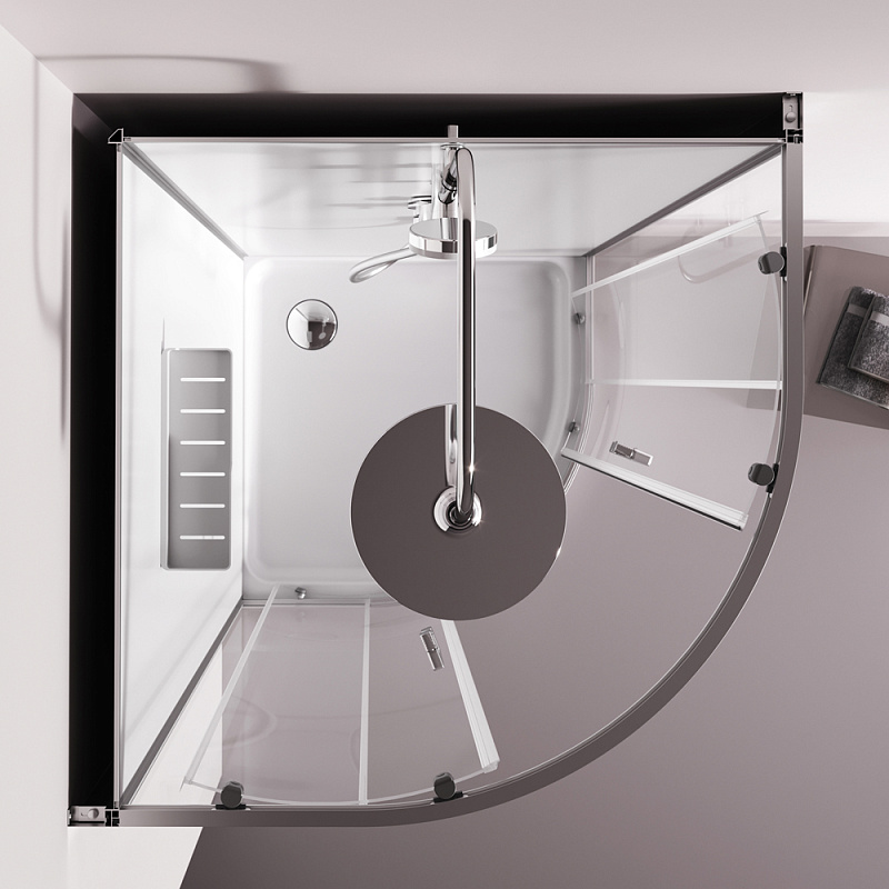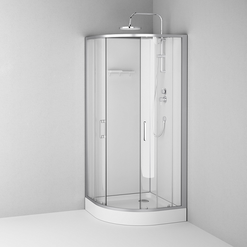 Душевая кабина бренда AM.PM коллекции Above без крыши с верхним тропическим душем представляет стильное решение для вашей ванной комнаты. Душевая кабина отлично впишется в ваш интерьер. Форма кабины - 1/4 круга. Цвет профиля - серебристый. Размер (Ш/Г/В): 895x895x2250 мм. Высота поддона - 150 мм. Материал задних стенок - стекло. Материал дверок - прозрачное стекло. Толщина стекла - 4 мм.