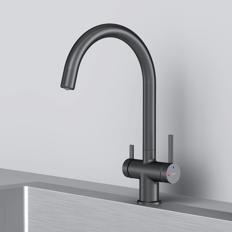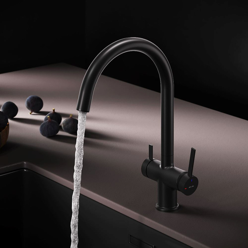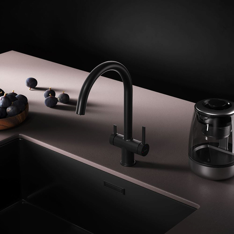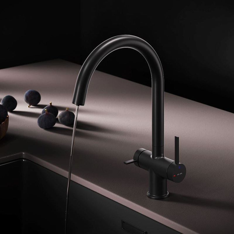 Смеситель для кухни AM.PM Func F8F07722 высокий с C-изливом с каналом для питьевой воды, черный
