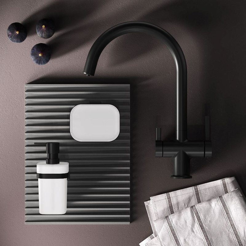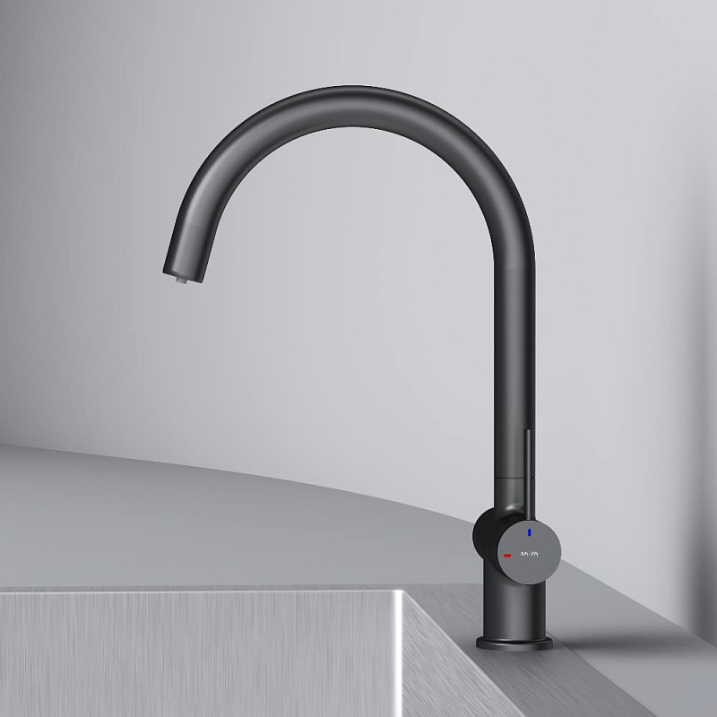 Встречайте долгожданное пополнение нашумевшей коллекции Func — кухонные смесители с оригинальными «фишками», характерными для всей коллекции. Дизайн, характерный только для премиум-сегмента, благодаря собственным дизайнерам бренда теперь представлен и в более доступной ценовой категории. Смеситель оснащён встроенным каналом для подачи питьевой воды. Чтобы получить питьевую воду, воспользуйтесь ручкой, расположенной с левой стороны корпуса; для обычной воды управляйте смесителем привычным образом. Размер (Ш/Г/В): 135x263x380 мм. Материал - нержавеющая сталь, цинк, латунь. Цвет - черный. Тип управления - однозахватный. Излив - поворотный.