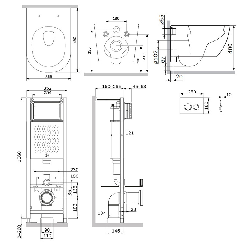 Инсталляция для подвесного унитаза бренда AM.PM коллекции ErgoFit с механическим управлением смыва включает в себя максимально полный комплект поставки: крепления, патрубки, звукоизолирующую прокладку, двухрежимную клавишу смыва. Подвод воды: Сверху универсальный (справа или слева). Размер инсталляции(Ш/Г/В): 352x150-265x1060-1320 мм. Размер клавиши (Ш/Г/В): 250x10x160 мм. Цвет и материал: синий каркас из нержавеющей стали, белый бачок из ABS-пластика, хромированная клавиша. Форма кнопок: круглые.