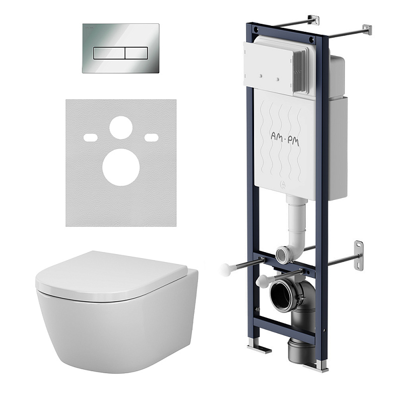 Унитаз подвесной с инсталляцией AM.PM Libre IS110151.601900 сиденьем микролифт, механ. клавишей хром