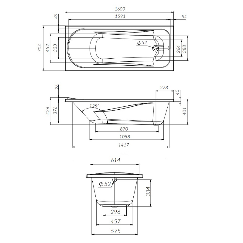 Допуск на отклонение фактического размера акриловых комплектующих, относительно заявленных на чертеже +/- 7 мм на 1 погонный метр. Размеры помещения под установку ванны должны обеспечивать технологический зазор +5 мм с каждого борта ванны (для учета линейных расширений материала под воздействием температуры и веса воды).