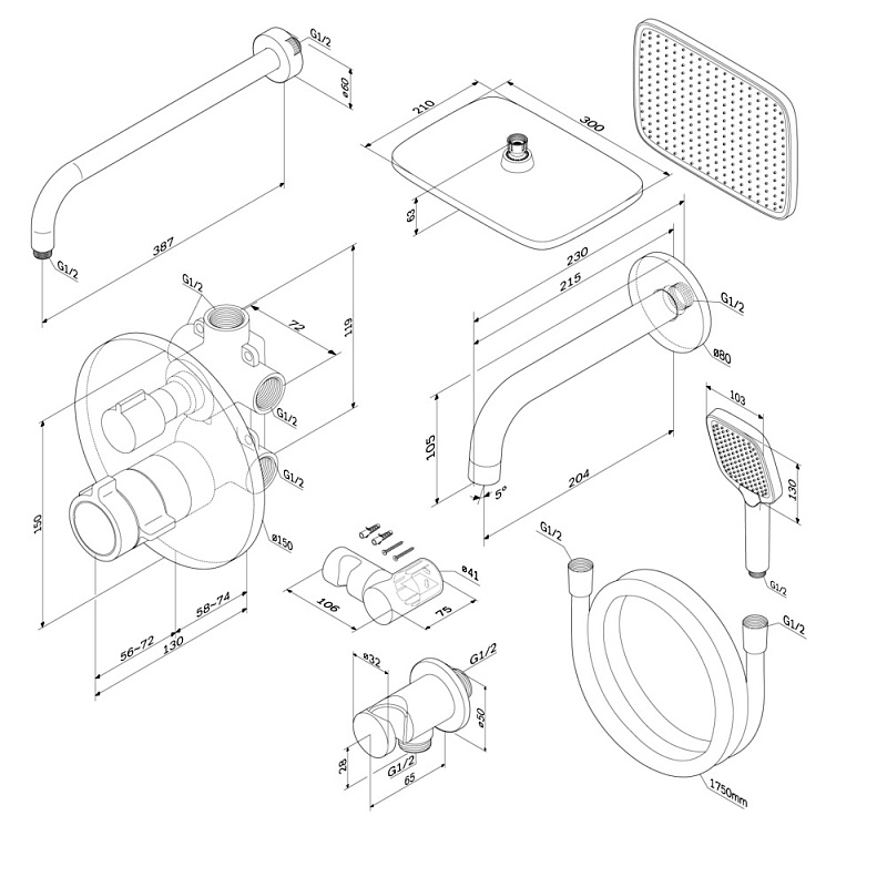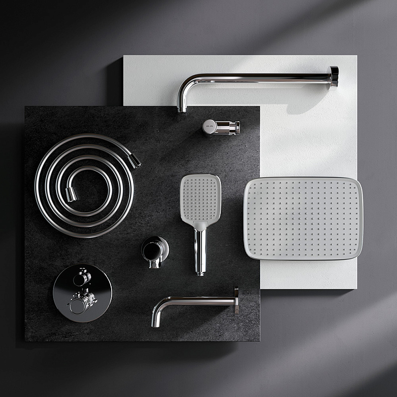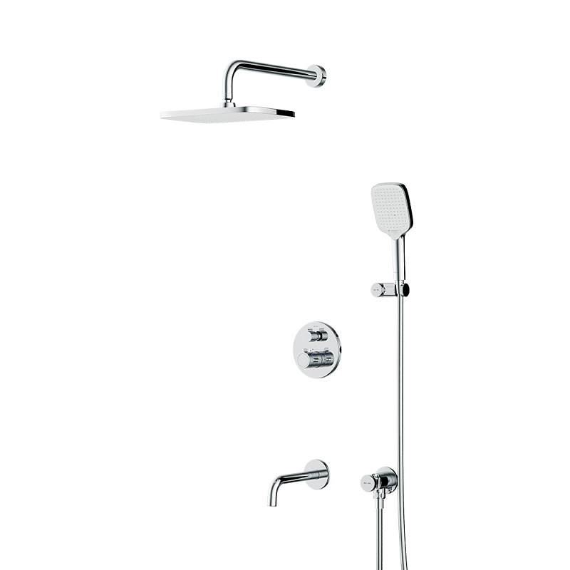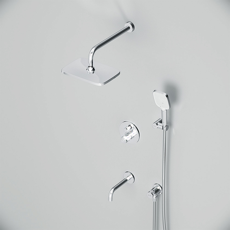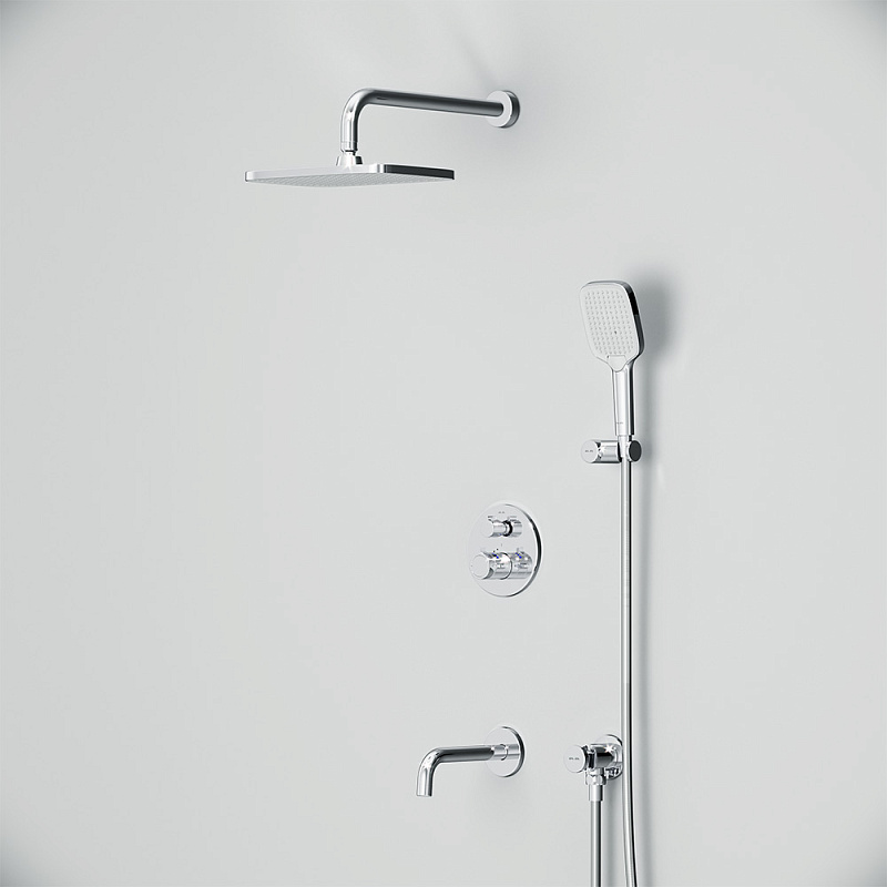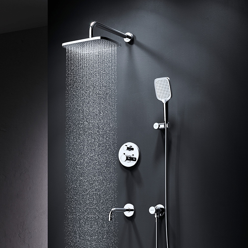 Встраиваемая душевая система AM.PM X-Joy FT85A3RH40 хром: тропический верхний душ, излив с душевой лейкой, термостат купить в Москве.